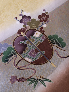 A boy’s kimono is made of habutae (plain-woven silk) and is black with bold patterns. The under-kimono is made of white, yellow or brown habutae. A baby girl’s kimono is often made of crepe and decorated with auspicious motifs such as cranes, tortoises, pines, chrysanthemums and other flowers.