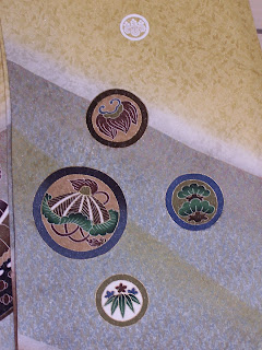 On the day of the visit to the shrine, the baby is dressed in a formal kimono. The paternal grandmother carries the baby and the parents accompany them. The kimono worn by the baby on this auspicious occasion has unique traditional features: there is no seam on the back of kimono since its width is the same as a bolt of kimono fabric. The back of regular kimonos consists of two widths of the kimono fabric. Other special features include long narrow sleeves, decorative cords and five family crests on the kimono.